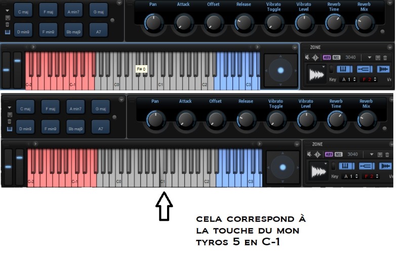 Malgré de nombreuses recherches , je n'ai pas réussi à trouver comment déplacer les touches attribuées aux effets en rouge en C1 au lieu de C-2 , pour que celles ci correspondent a mon clavier tyros 5 . de même pour les touches bleues affectées aux voix  sur HALION 6 .bien sur  sur Cubase 11.